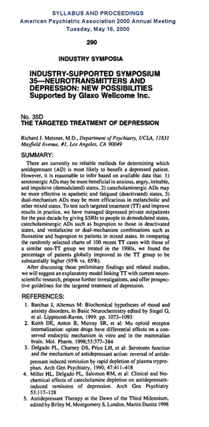 Metzner, 2000 APA Annual Meeting Presentation